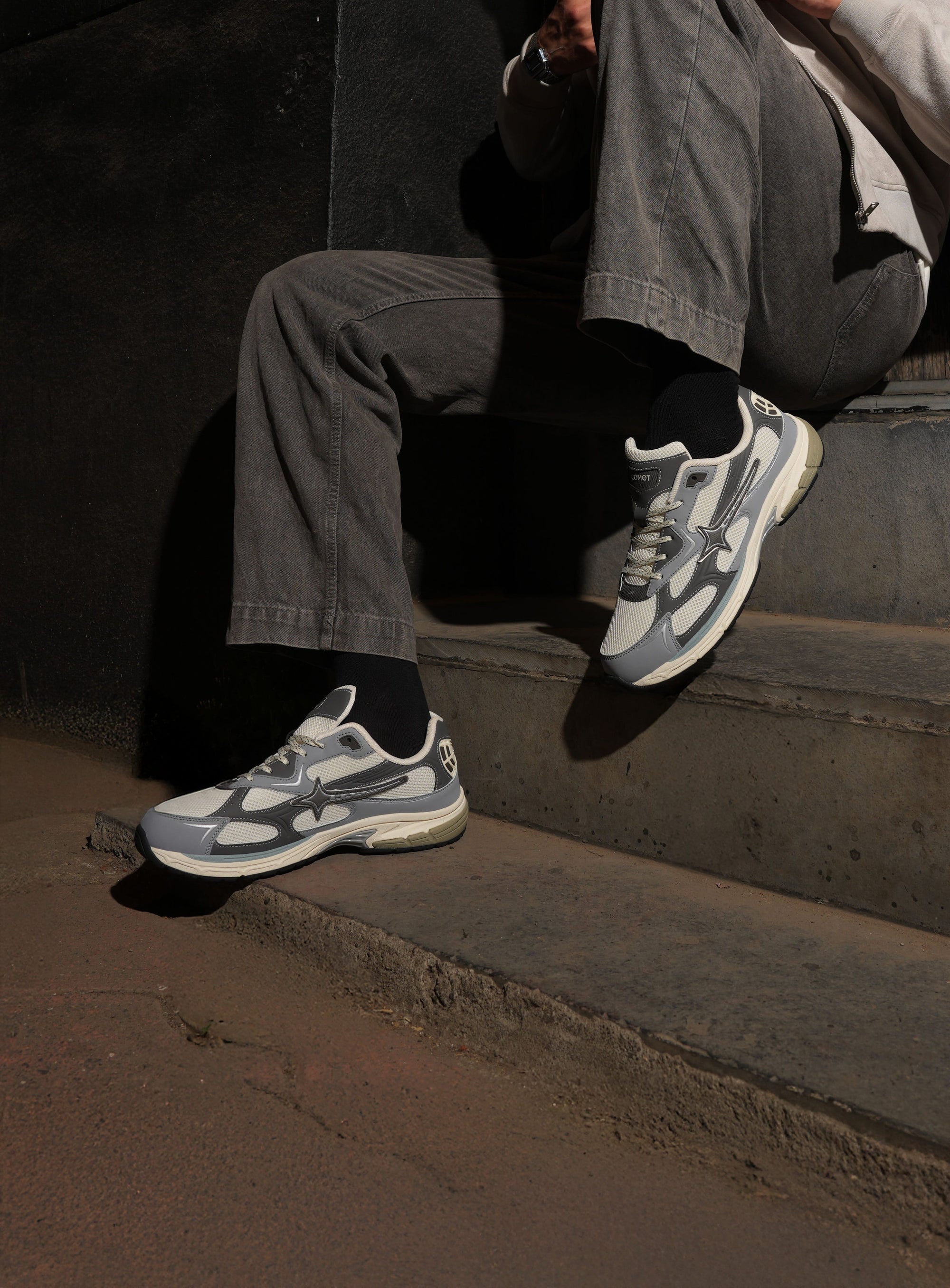 Moonwalker is a sport-inspired lifestyle sneaker designed with intention from the ground up. Inspired by the idea of navigating space with precision rather than force, the white and grey palette removes distraction and sharpens focus.