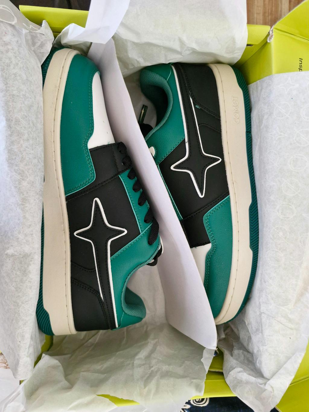 From ancient tales of mischievous forest dwellers comes the Goblin - a sneaker that embodies the cunning spirit of its mythical namesake. The emerald green panels mirror the legendary creatures' forest realm, while the stark black centrepiece echoes their nocturnal nature.